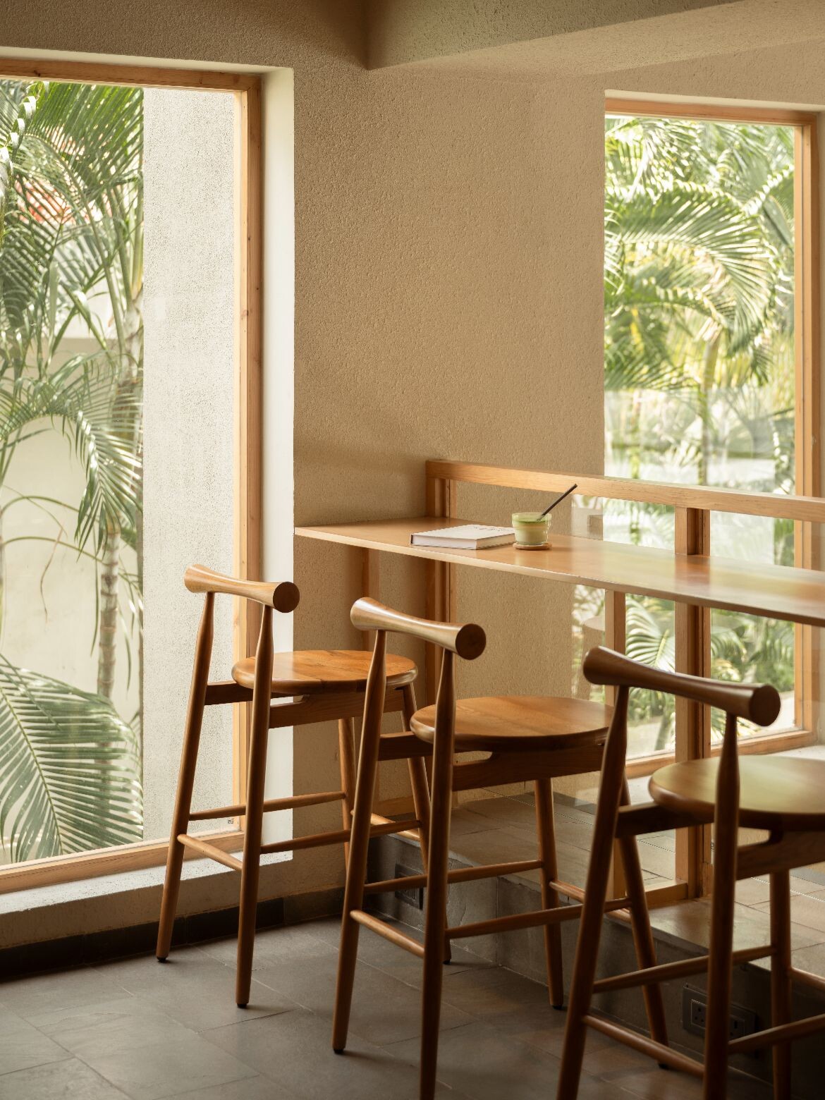 Located in Jubilee Hills, a chic neighbourhood in western Hyderabad, India, the design of Ra:tio reflects the precision and balance inherent in specialty coffee culture, where grind size, water temperature, brew time and beans must work in harmony.