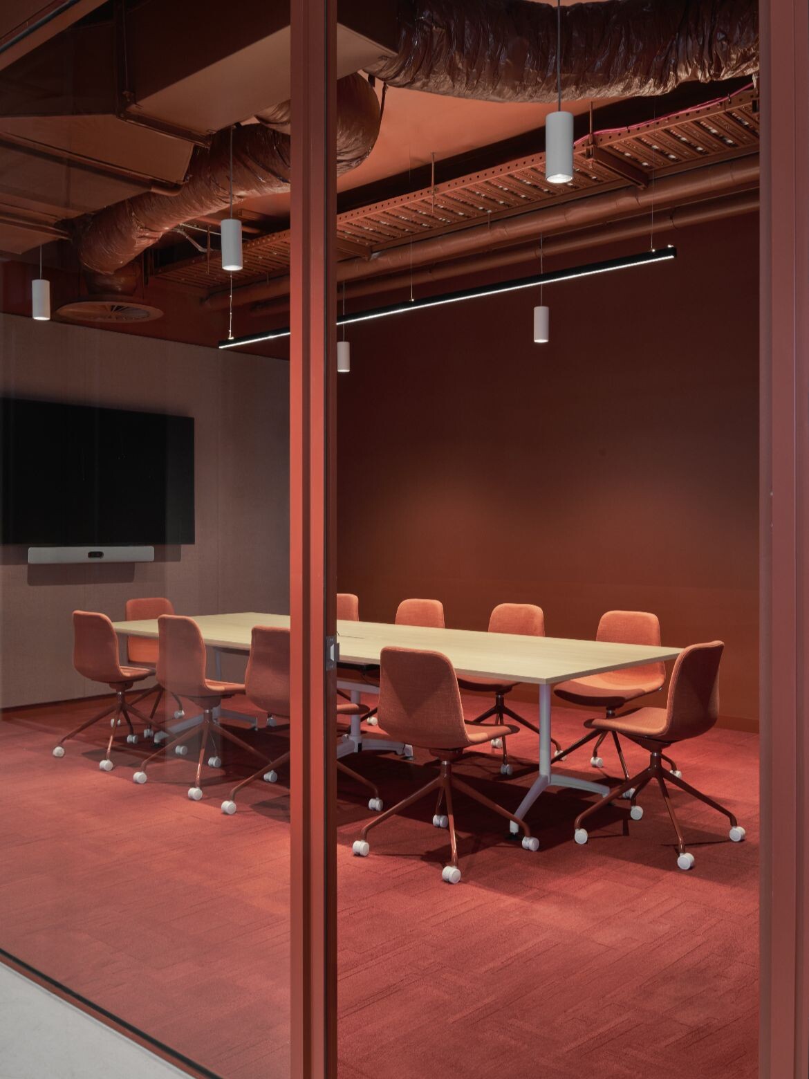 Saturated colour is used strategically to define zones, articulate circulation and enhance restored architectural elements, demonstrating a high level of design discipline throughout the project.