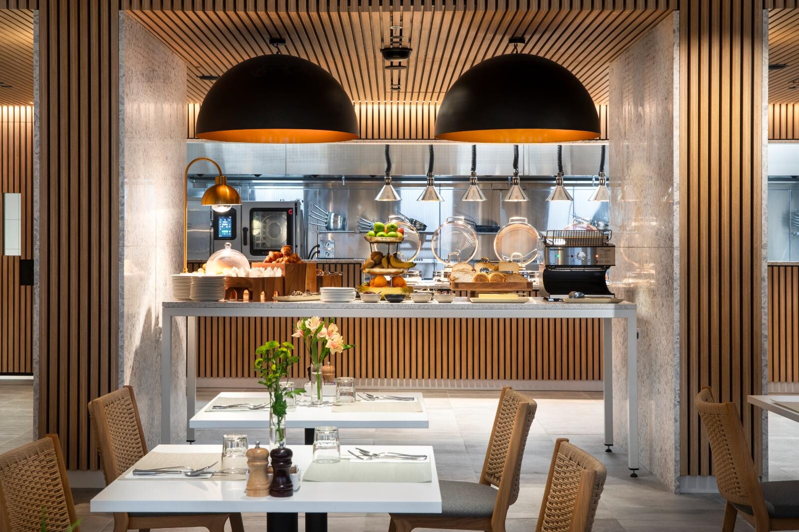 Holiday Inn, by contrast, offers a grounded and tactile environment of natural timbers, brickwork and neutral tones, taking cues from the palette of the original buildings and honoring the site’s heritage.