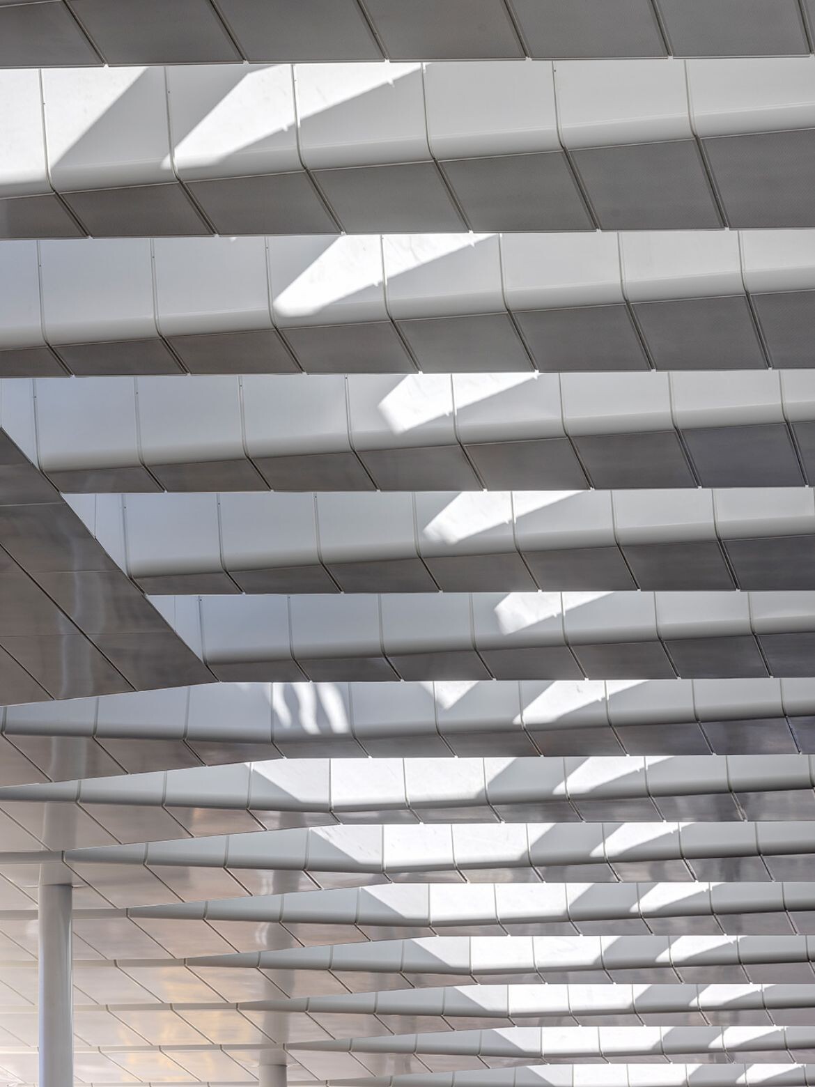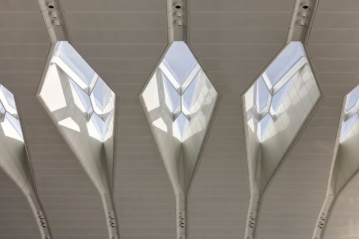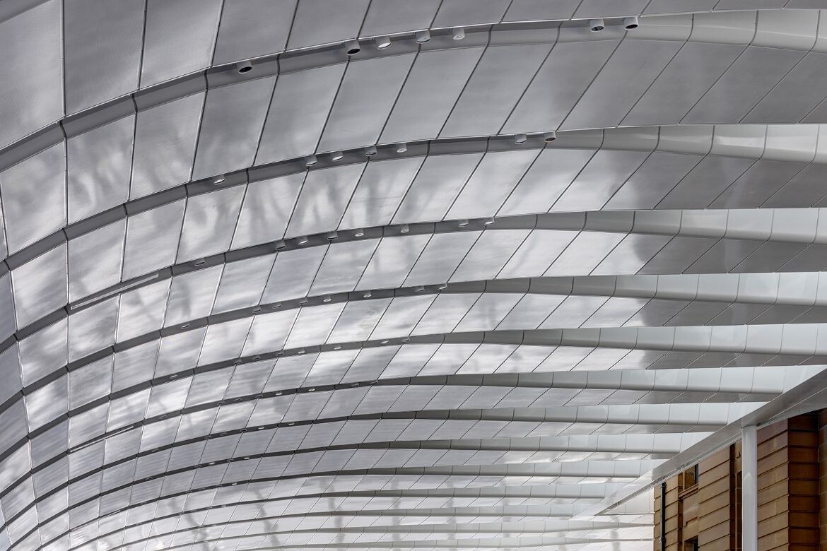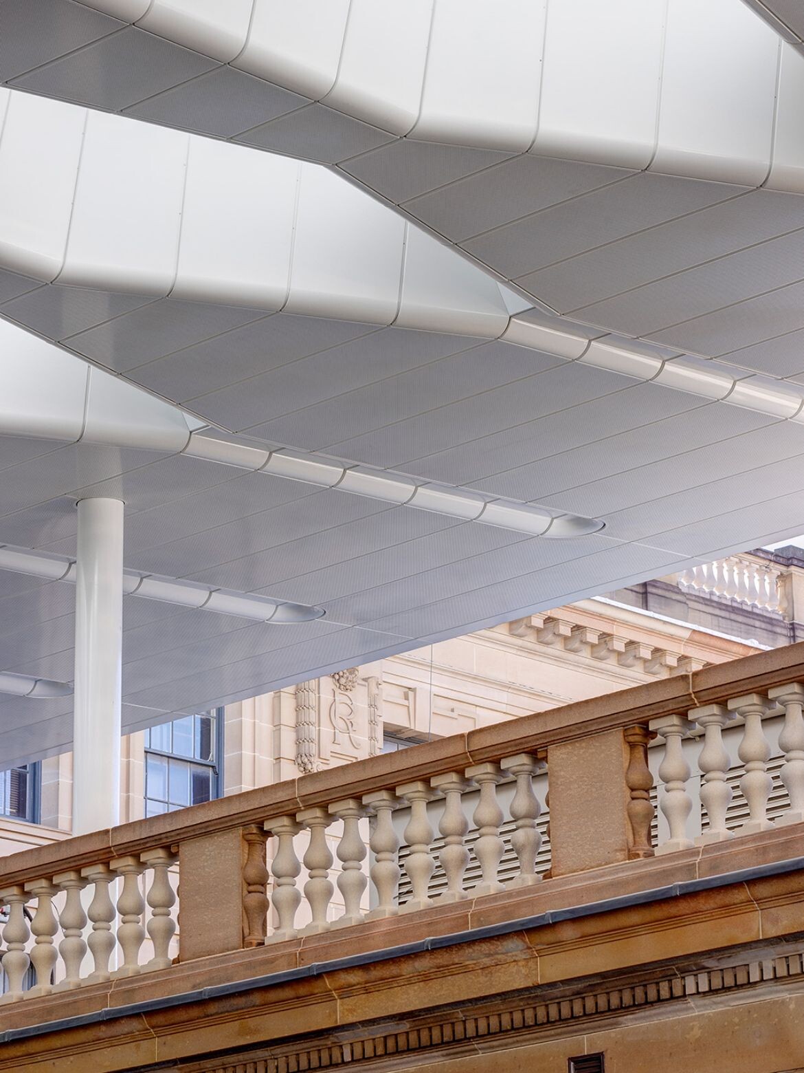 Notably, all of the canopy structure additions are in principle fully reversible. Visitors might also remark on how delicately the connection points between that structure and the heritage buildings are detailed, with a respectful gap implied between them in order to allow even more light in. Meanwhile, repeated skylights in the roof panels tie into the curves and draw sunlight into the large concourse.