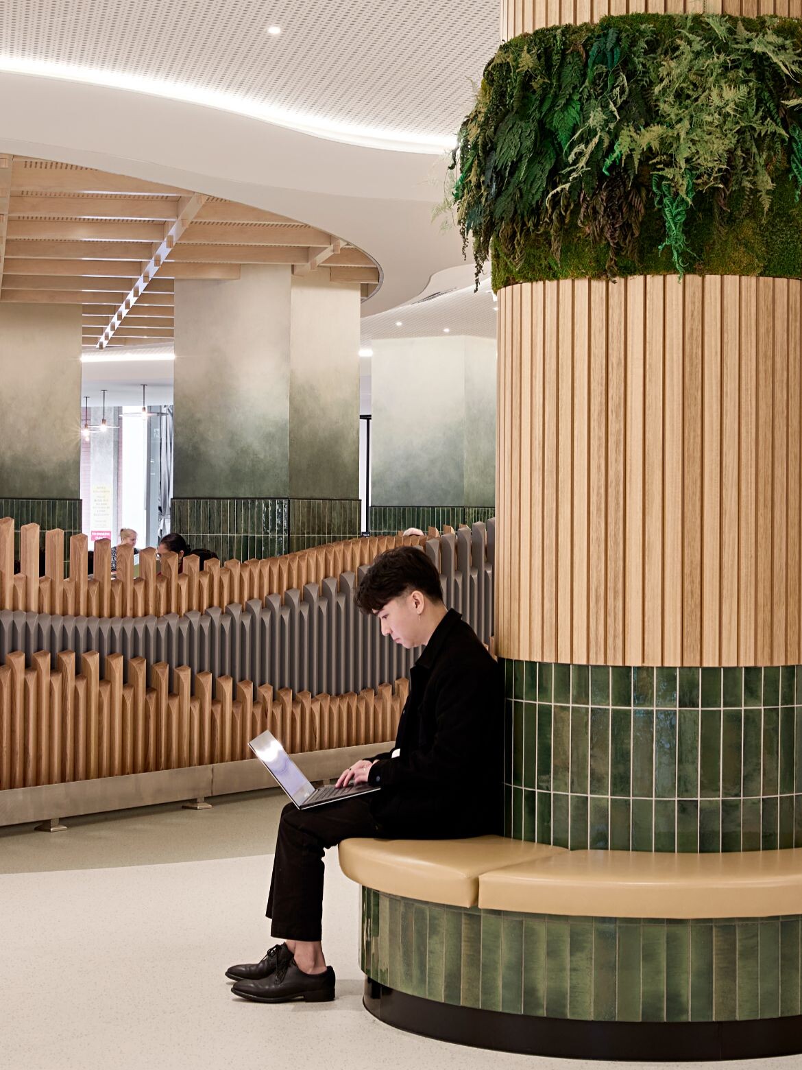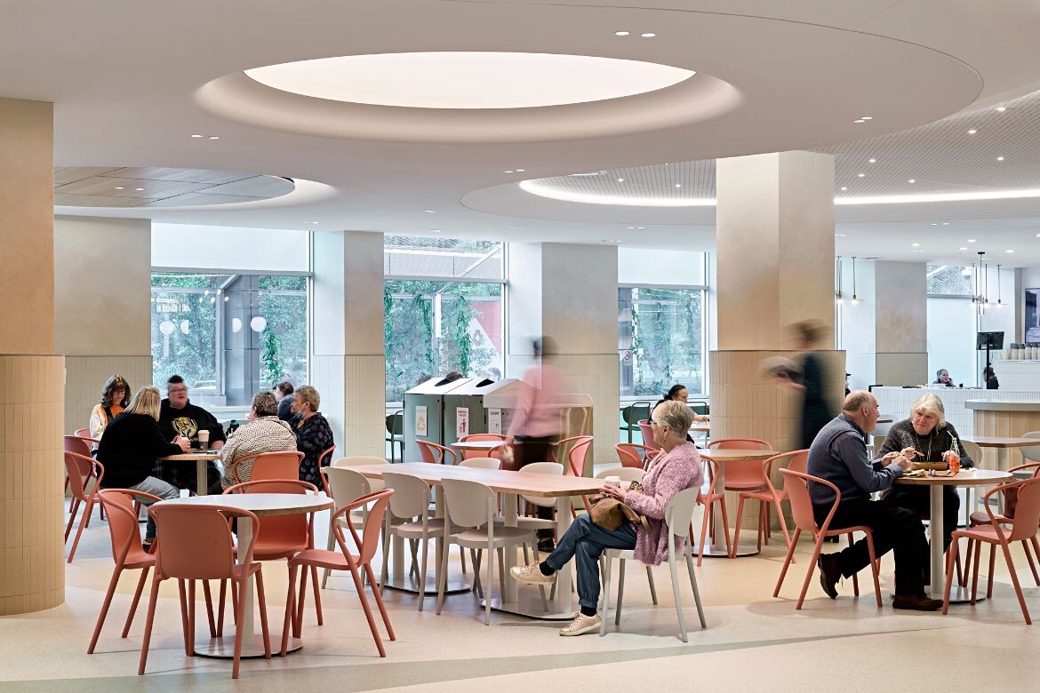 Another major commission is the redevelopment of the main retail precinct at The Alfred hospital in Melbourne. Spanning 2,000 square metres, the Alfred Health Food and Beverage Precinct was reimagined by AIR as three interconnected zones — The Beating Heart, The Sunroom and The Village — designed to improve flow, orientation and comfort within a typically utilitarian setting. The guiding principle was to respond to the emotional needs of patients, staff and visitors, creating a more humane environment.