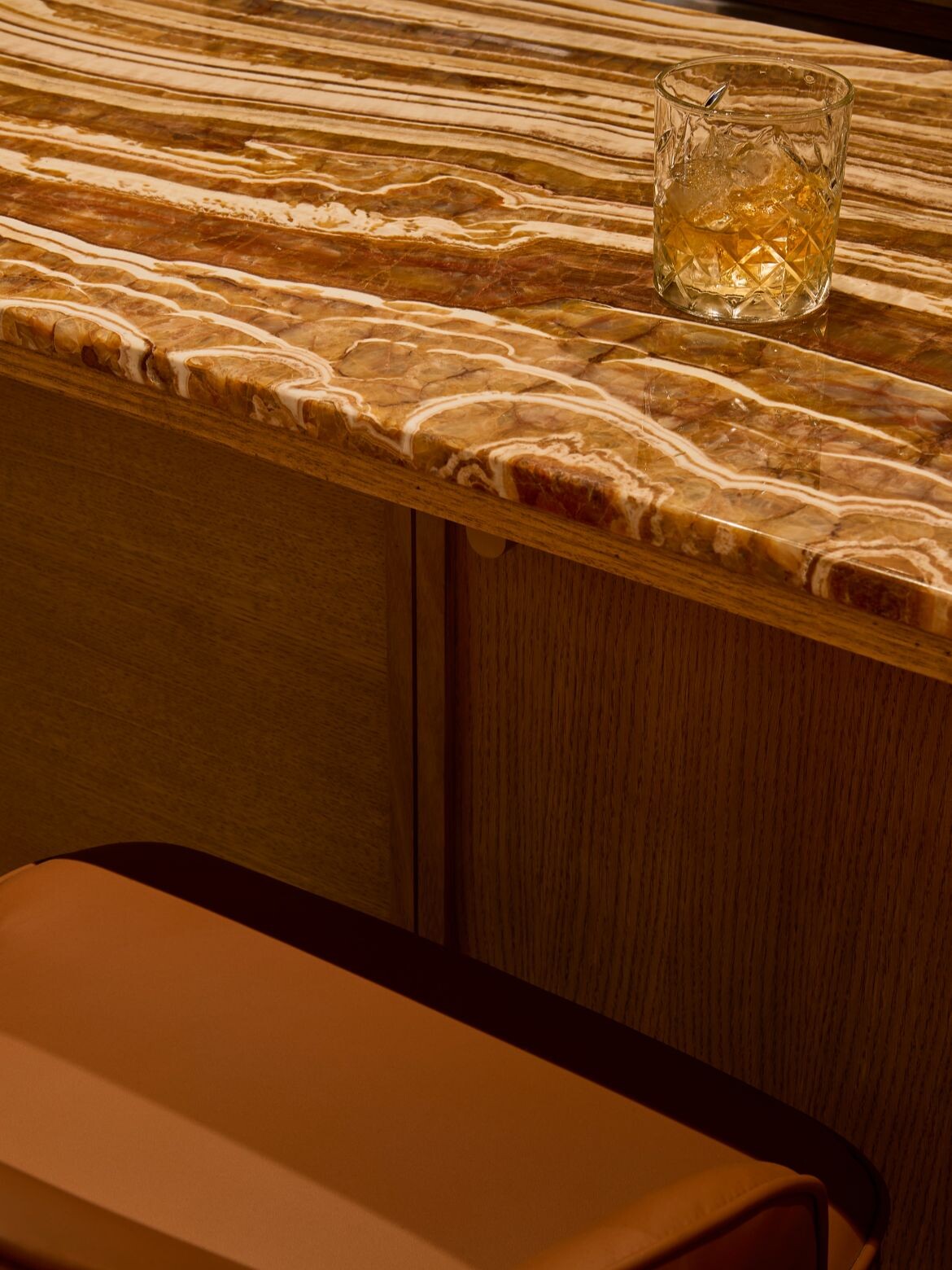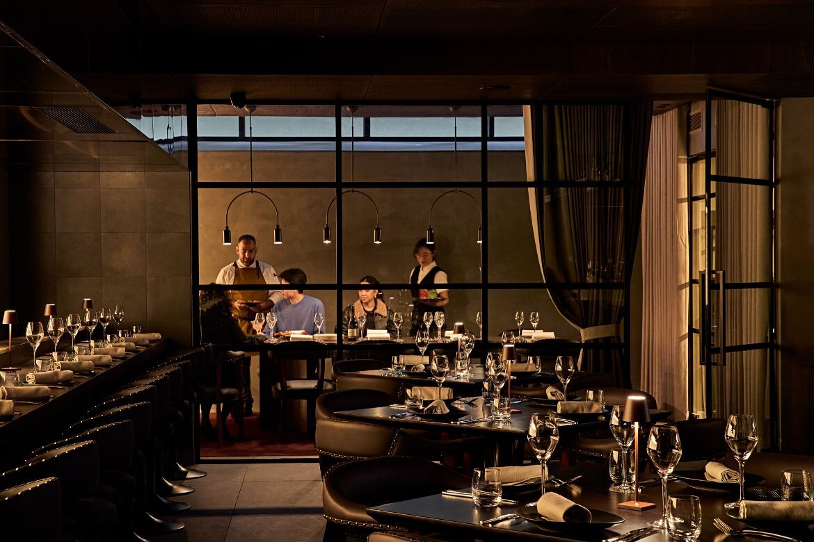 For ii.ii.vi, the brief centred on contrast and ritual. “The idea was a refined steakhouse concealed beneath a wine and cocktail lounge,” Goh explains. “The process of heating the charcoal and cooking over fire is inherently theatrical, so an open kitchen became essential.”