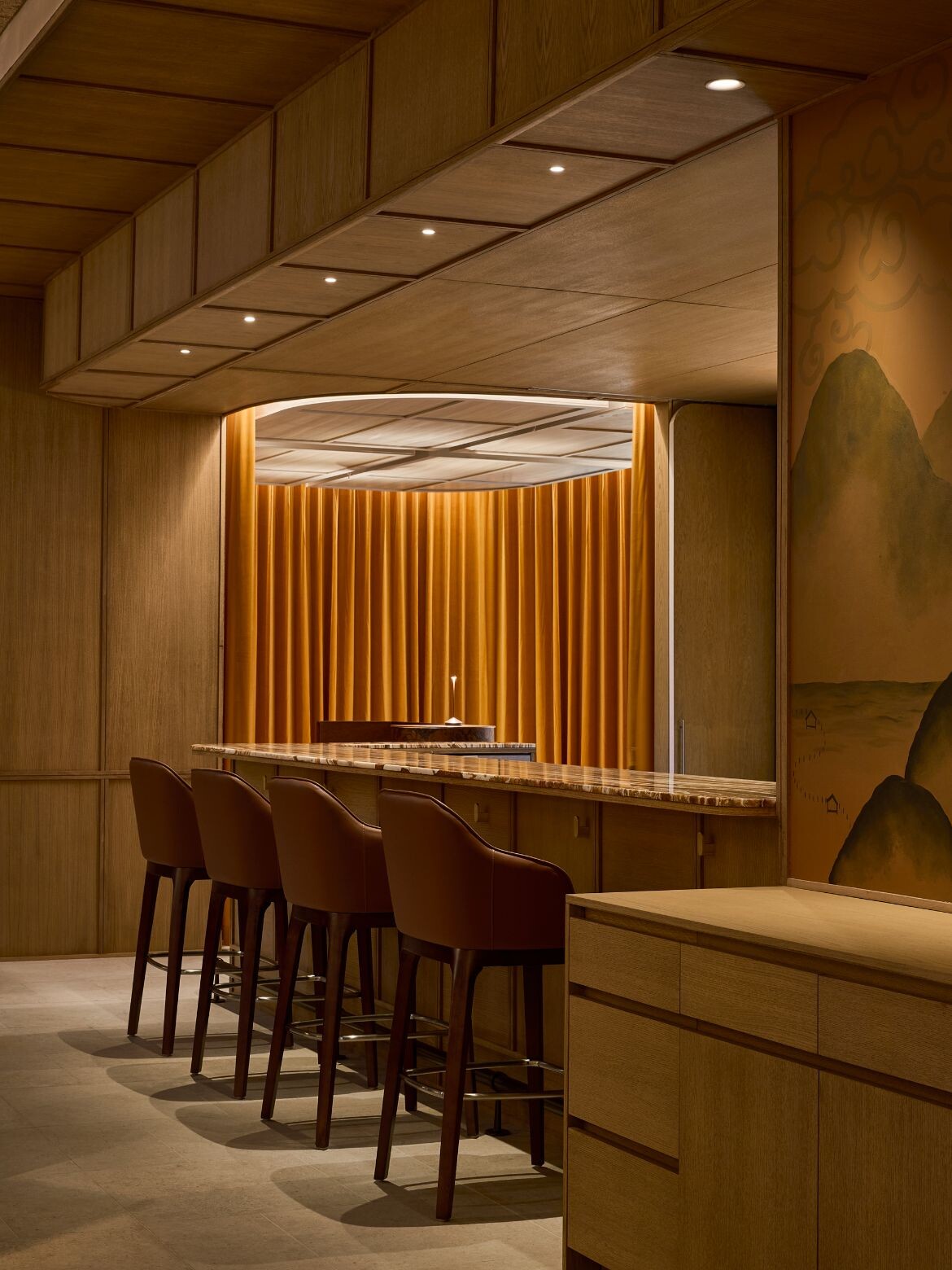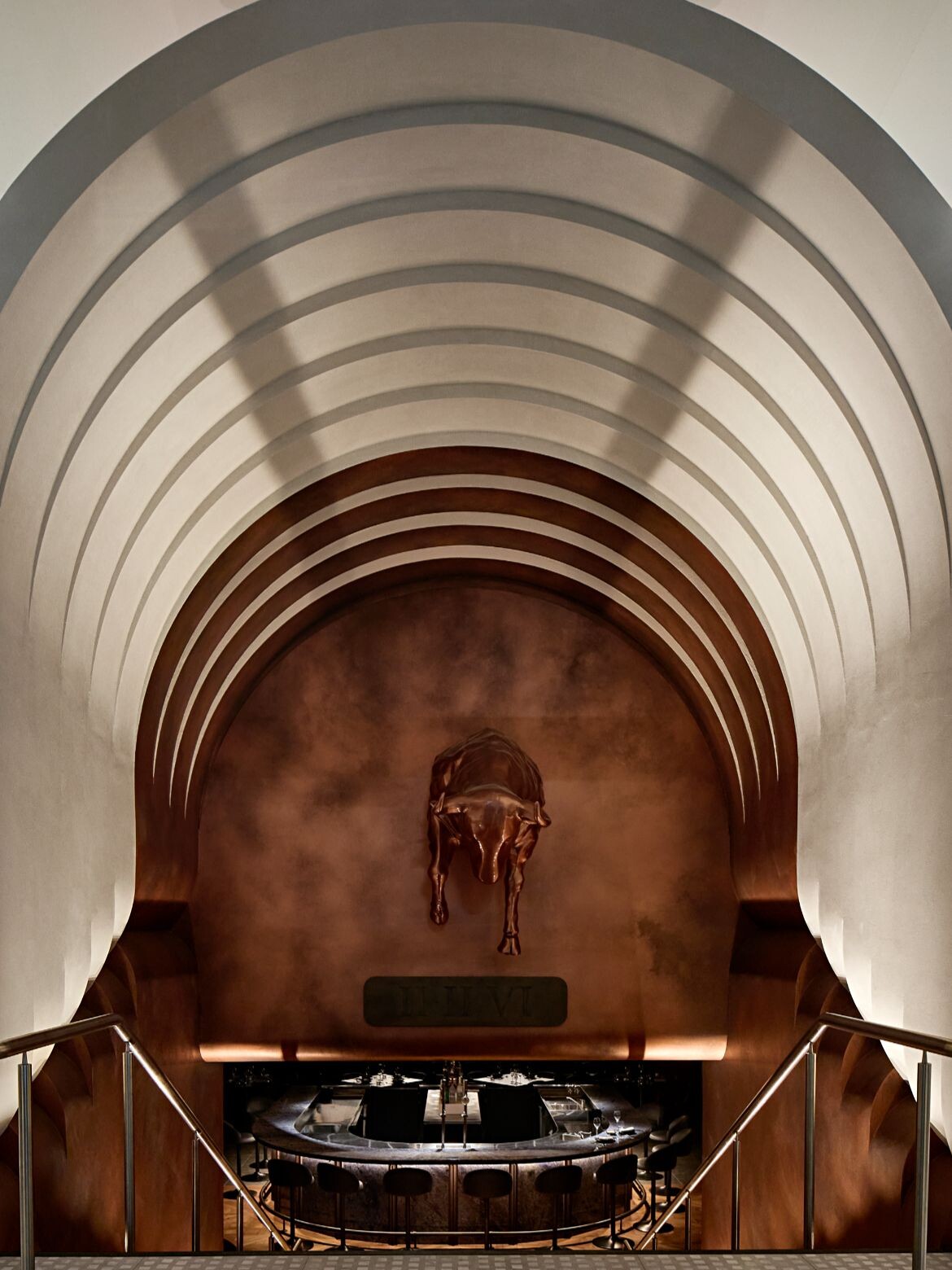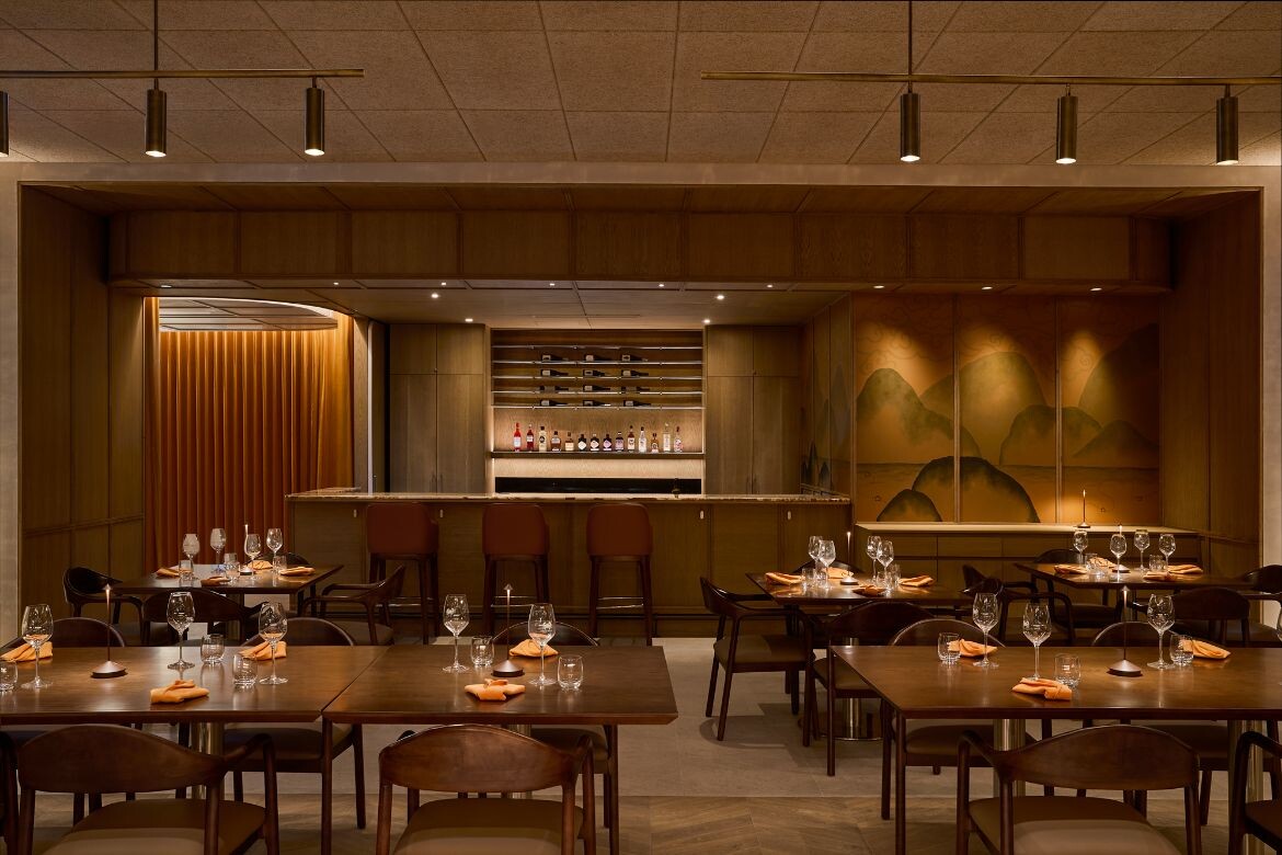 For ii.ii.vi, the brief centred on contrast and ritual. “The idea was a refined steakhouse concealed beneath a wine and cocktail lounge,” Goh explains. “The process of heating the charcoal and cooking over fire is inherently theatrical, so an open kitchen became essential.”
