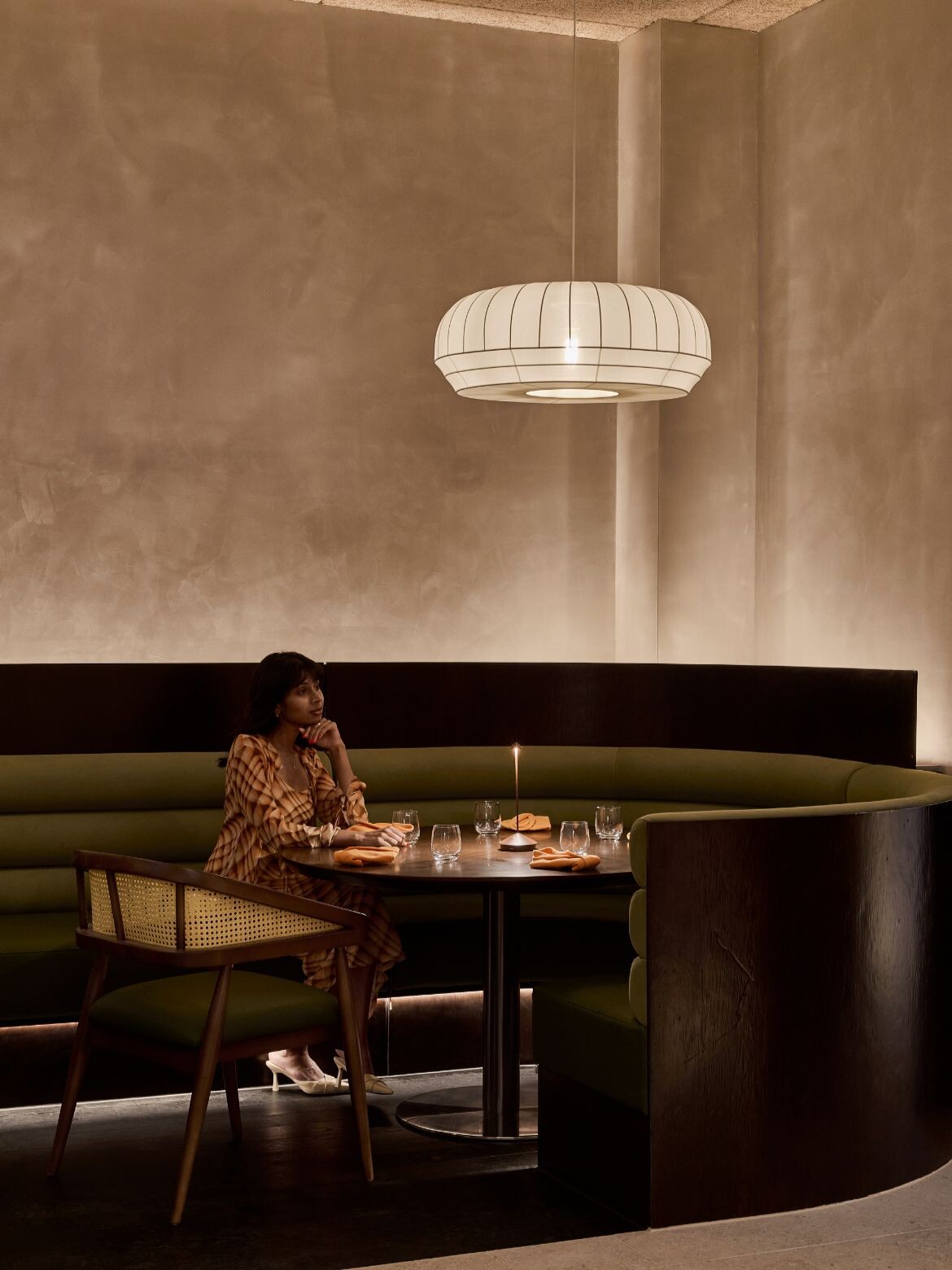 “The client envisioned Ministry of Crab as a theatre, with the open kitchen at centre stage,” says Goh. “Certain Sri Lankan dishes involve a highly performative preparation process, so the dining space was designed to frame these moments. Warm colours and expressive lighting help amplify the sense of spectacle.”