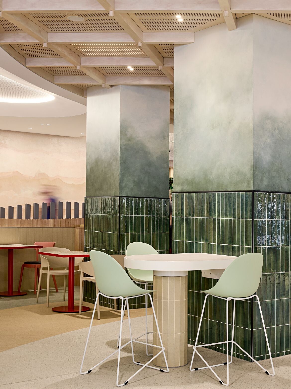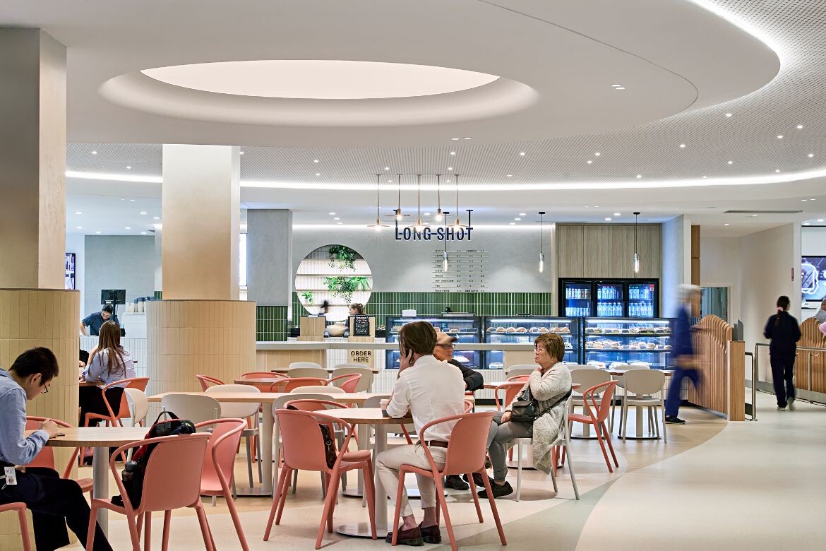 Another major commission is the redevelopment of the main retail precinct at The Alfred hospital in Melbourne. Spanning 2,000 square metres, the Alfred Health Food and Beverage Precinct was reimagined by AIR as three interconnected zones — The Beating Heart, The Sunroom and The Village — designed to improve flow, orientation and comfort within a typically utilitarian setting. The guiding principle was to respond to the emotional needs of patients, staff and visitors, creating a more humane environment.