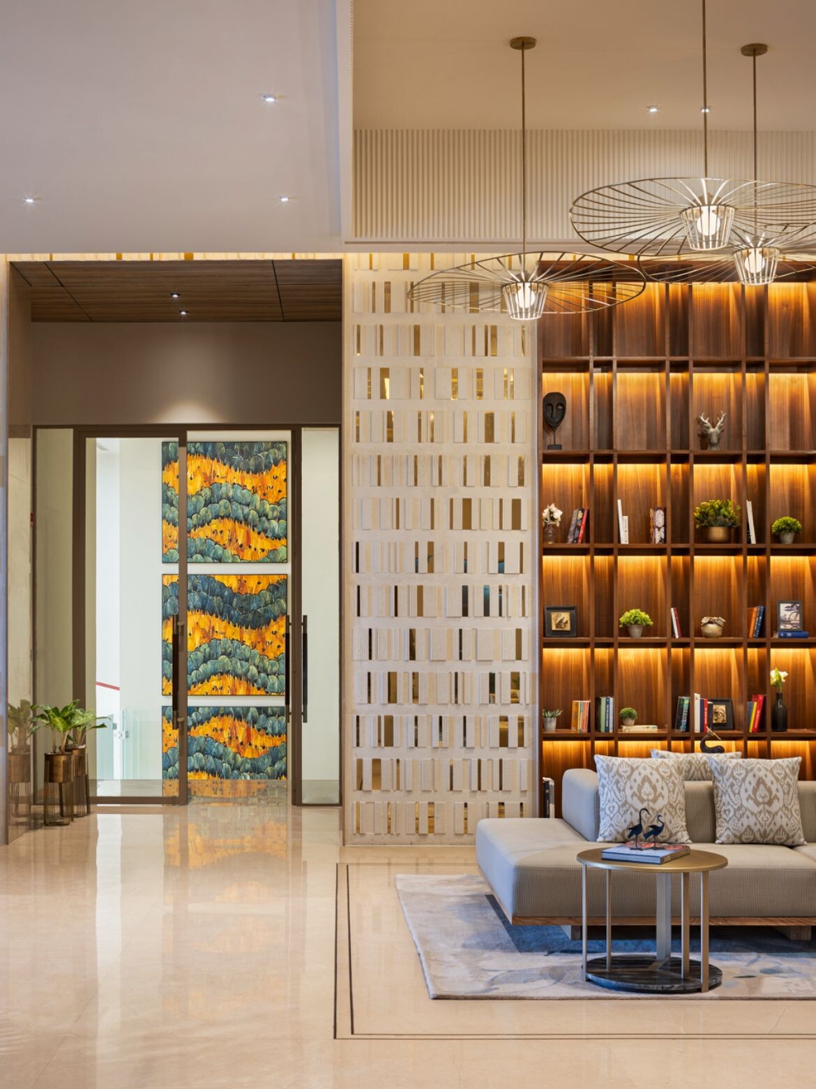 The brief was to establish the clubhouse as an extension of the residential spaces, to foster a sense of continuity and to integrate the principles of biophilia into the design. While the interior of Godrej Woods Clubhouse reflects good taste and sophisticated style, the ideas of Japandi design are evident. As a fusion of Japanese and Scandinavian styles, Japandi design takes the best from both worlds, where Japanese serenity meets Nordic warmth.
