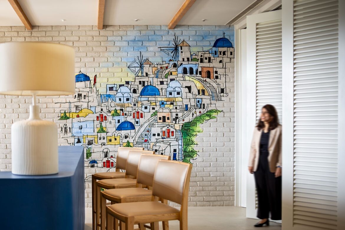 The timeless design will patina well, the spatial flow has been deftly defined and including such touches as the pops of Mykonos blue, the large artworks on the walls, rugs beneath coffee tables and bespoke pendants and table lamps, make this clubhouse a home away from home – albeit a very sophisticated and curated residence.