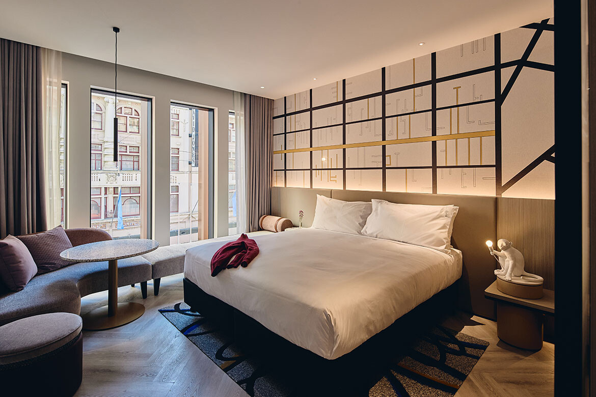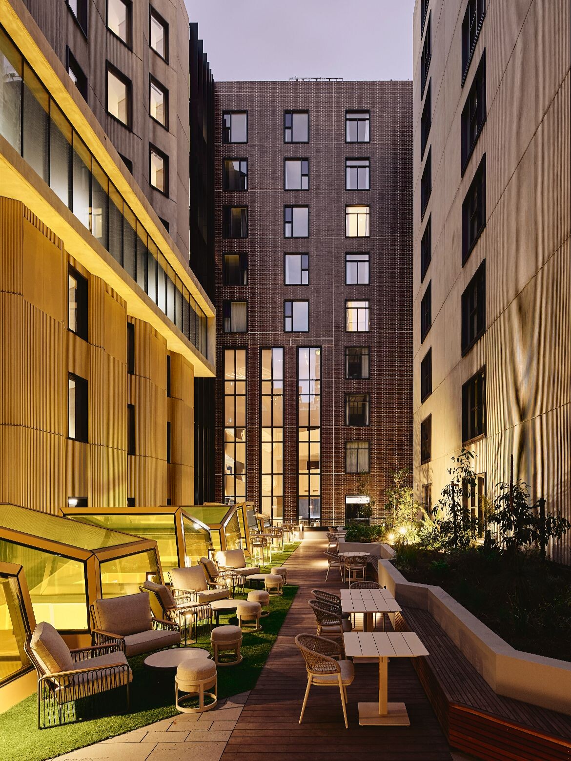 Buchan led the architecture and interior design for the entire project, including both hotels. “Melbourne Walk is a celebration of the city’s rich and unique identity,” says Buchan Senior Associate Hayden Djakic. “The design enhances the cross-city pedestrian network and merges retail glamour with the gritty laneway culture of contemporary Melbourne.”