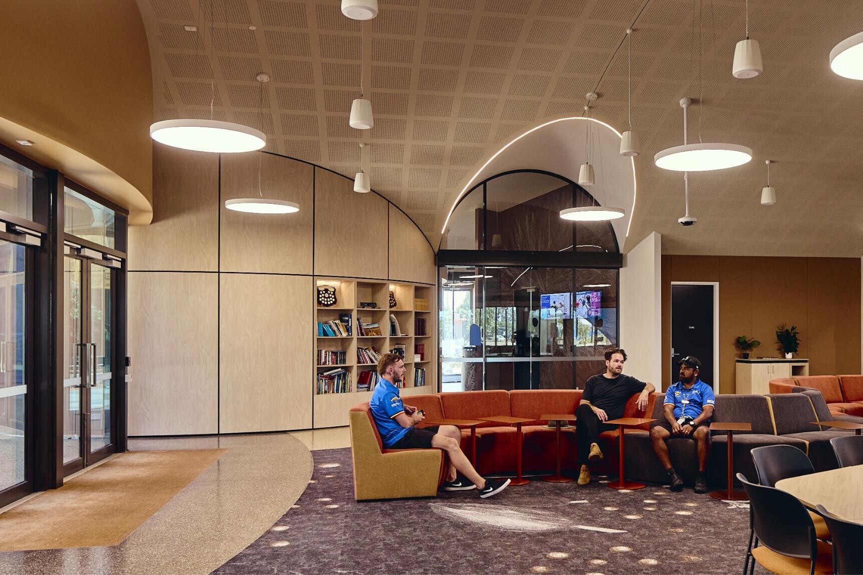 When ARM Architecture began work on the Munarra Centre for Regional Excellence on Yorta Yorta Country in Shepparton, Victoria, the ambition was always that the architecture authentically expressed the stories of First Nations people. The pathways-based tertiary education facility, led by First Nations people, is thus conceived based on a collaborative process between the design team and local community. The result is a building full of meaning, where even the floor – created using Milliken Couture PrintWorks™ technology – has a story to tell.