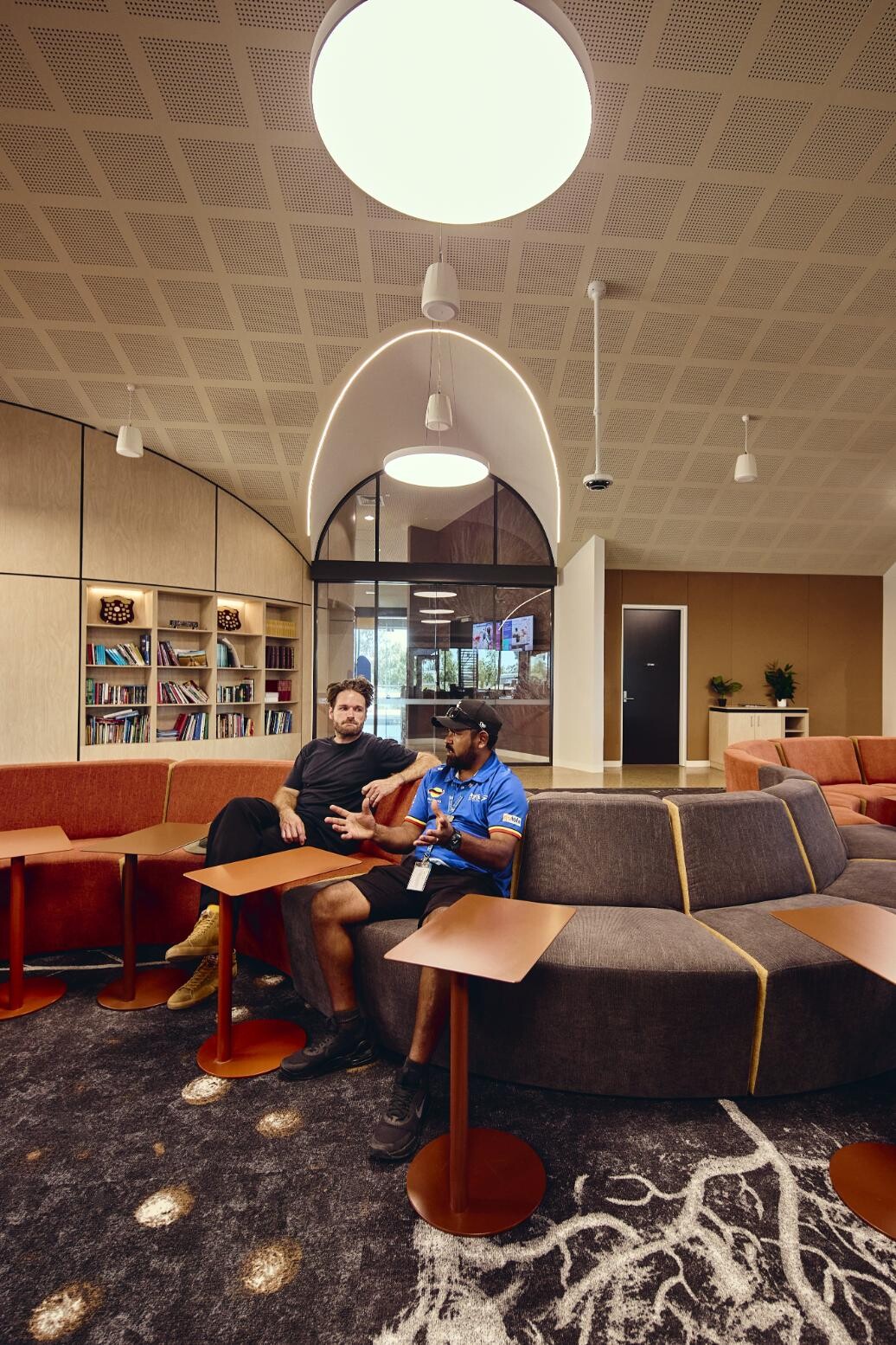 ARM Architecture began by conducting a series of community workshops, where stories and artworks naturally emerged that were then used to inspire the design concept. A narrative focused on the night sky, for example, is expressed in the interior design through a random placement of tiny pixel light clusters on a ceiling.