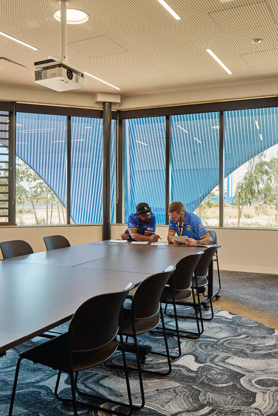 For the Munarra Centre, Milliken’s design team worked closely with ARM Architecture, testing samples, adjusting scale and refining contrast to ensure legibility without dilution. Where necessary, subtle technical interventions were introduced to enhance the outcome and support performance. “It was essential that the integrity of the original artwork came through in the flooring and we were careful not to manipulate the imagery more than necessary,” says Jessica Sanders, a designer at Milliken. “But we did make recommendations to ensure the design would perform well as a carpet product.” For example, a subtle background texture was introduced to support durability and manage any soiling.