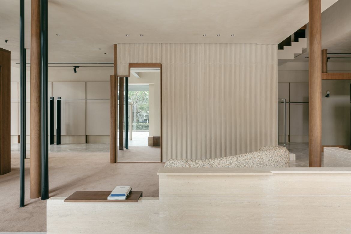 NO SUCH THING by Mountain Soil is a concept store in Shaoxing, Zhejiang, that presents a response to its local context and functional needs. The space – spanning 300 square-metres – integrates fashion, accessories, footwear, home goods and art derivatives in a curatorial environment that respects its commercial nature and architectural surroundings.
