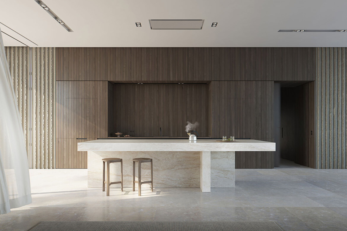 Designed for seamless integration with Dekton by Cosentino stone countertops, the cooktop’s minimalist design is an exercise in restraint. Distilled to its essentials, including the LED “dot”, the worktop surface, and Gaggenau’s signature performance knob, the cooktop embodies a considered approach to clarity and reduction. The LED dot, a smart centre light within the cooking zone, guides cookware placement and indicates residual heat during use. When inactive, it vanishes completely, allowing the countertop to return to a clean, understated surface suitable for preparation, serving, dining, or everyday tasks throughout the day.