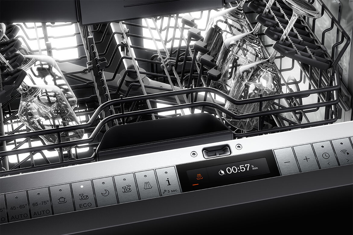 Gaggenau’s intelligent water-softening and signature Gentle Care technology – engineered specifically for delicate items like stemware – combine gentle spraying pressure and lower temperatures to ensure thorough cleaning without any risk of glass damage. Underpinning this performance is the integration of a natural silicate, Zeolite, which allows the appliance to carefully dry dishes and conserve energy all throughout its lifespan – a seamless embodiment of Gaggenau’s unwavering commitment to ecological design.