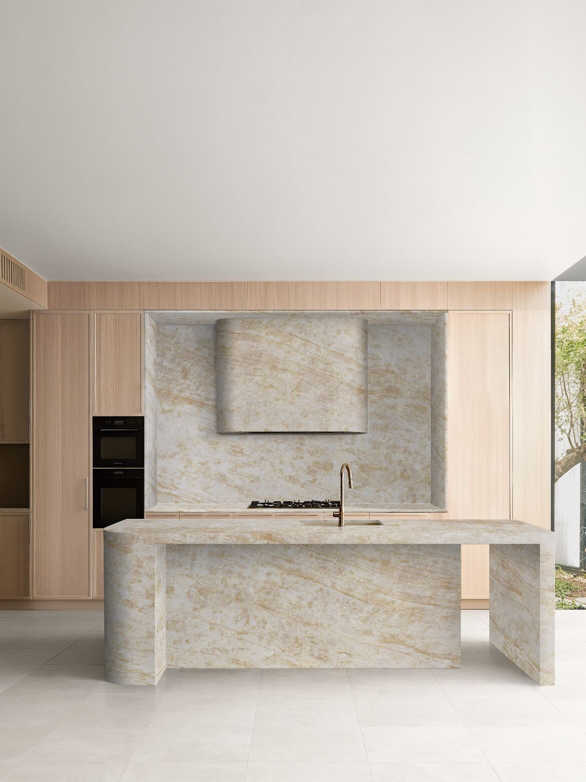Quantum Zero is also crafted to withstand the rigours of everyday life, with a durable, low-maintenance and non-porous surface that retains the subtle gloss and tactile smoothness of stone over time. The stain and scratch-resistant quality is ideal for hard-working zones such as kitchen benchtops, splashbacks, bathrooms, laundries and entries, while 3D vein technology ensures the visual qualities remain distinct.