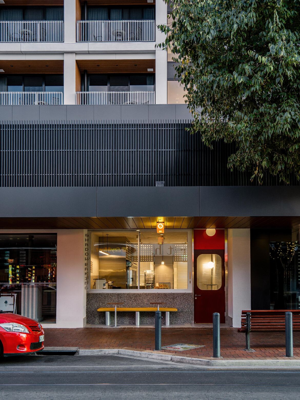 Shadow Baking combines both a sensory immersion with the lively animation of the early start that bakers are all too familiar with – waking up the urban landscape as a glowing lightbox to signal the start to the day. Located along Jetty Road, Glenelg, the materiality of the interior is grounded in a utilitarian DNA. Stainless steel – chosen both for its functional necessity and as a reflection of the precision required in baking – becomes the anchor of the space.
