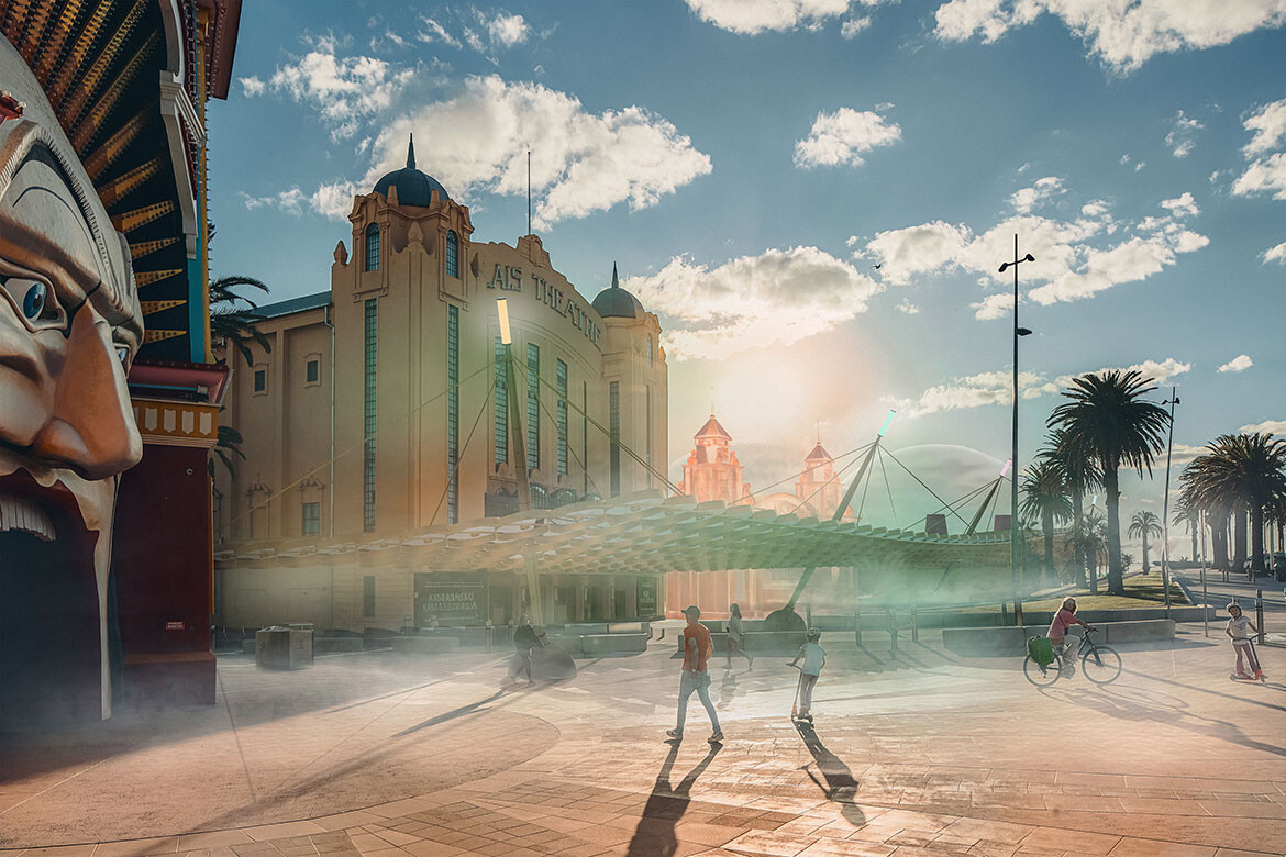 Rather than proposing a master plan, Soft Infrastructures: St Kilda Reimagined brings together a series of speculative civic fragments including a floating canopy, reimagined public furniture, luminous surfacing and an animated reinterpretation of the St Kilda foreshore.