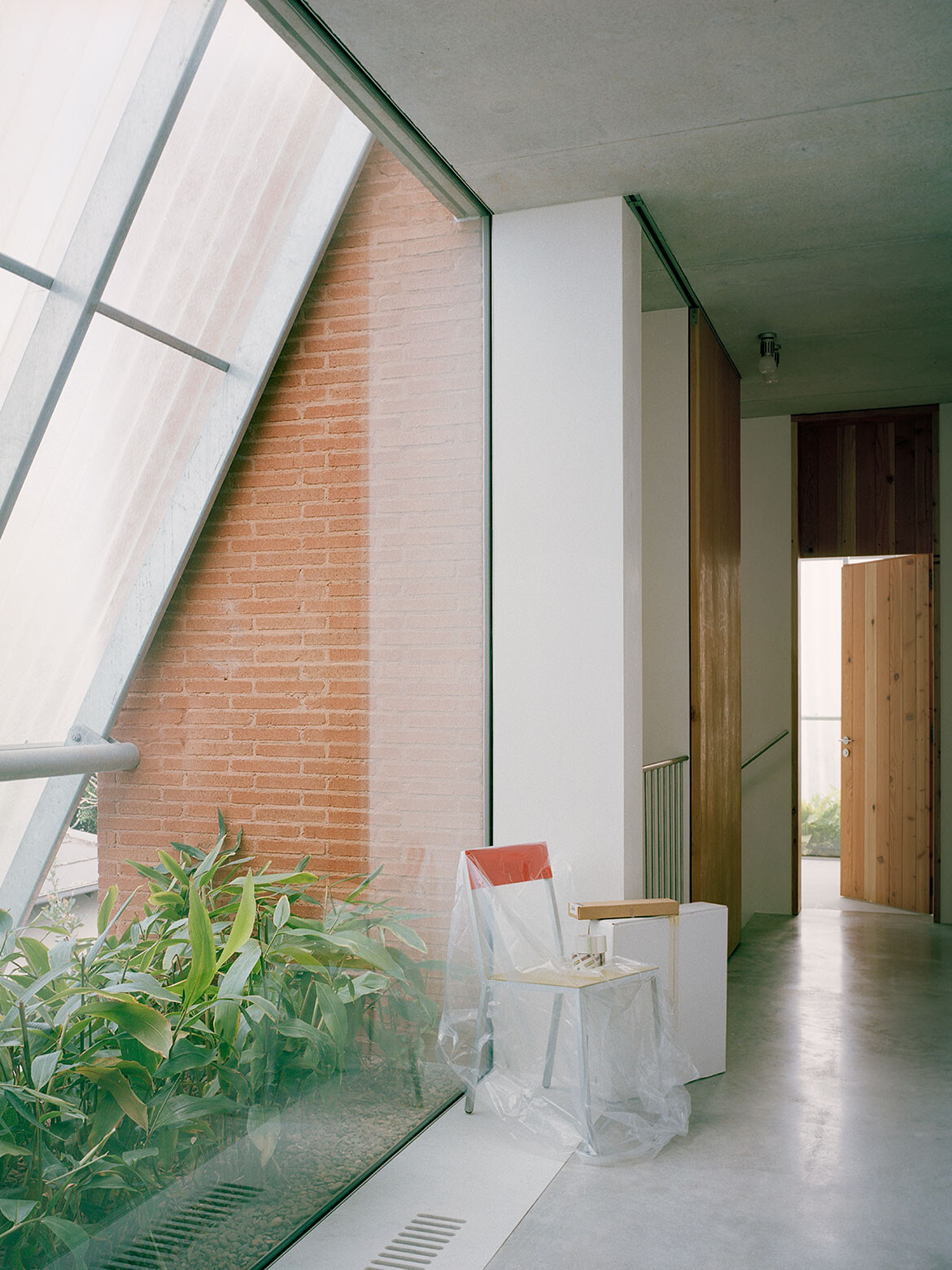 “We needed to come up with something quite different in terms of what council would accept,” explains Gill. Something, he continues, that “would provide privacy, but would also give us an opportunity to make those spaces upstairs really rich and enjoyable to inhabit. We planted these roof gardens and used this off-the-shelf fiberglass, corrugated material – which is probably more at home in industrial use. But it creates this beautiful soft light, and the gardens grow feverishly underneath these screens. By the time you get upstairs, it actually has this otherworldly character to that does make you forget that you’re in Bondi.”