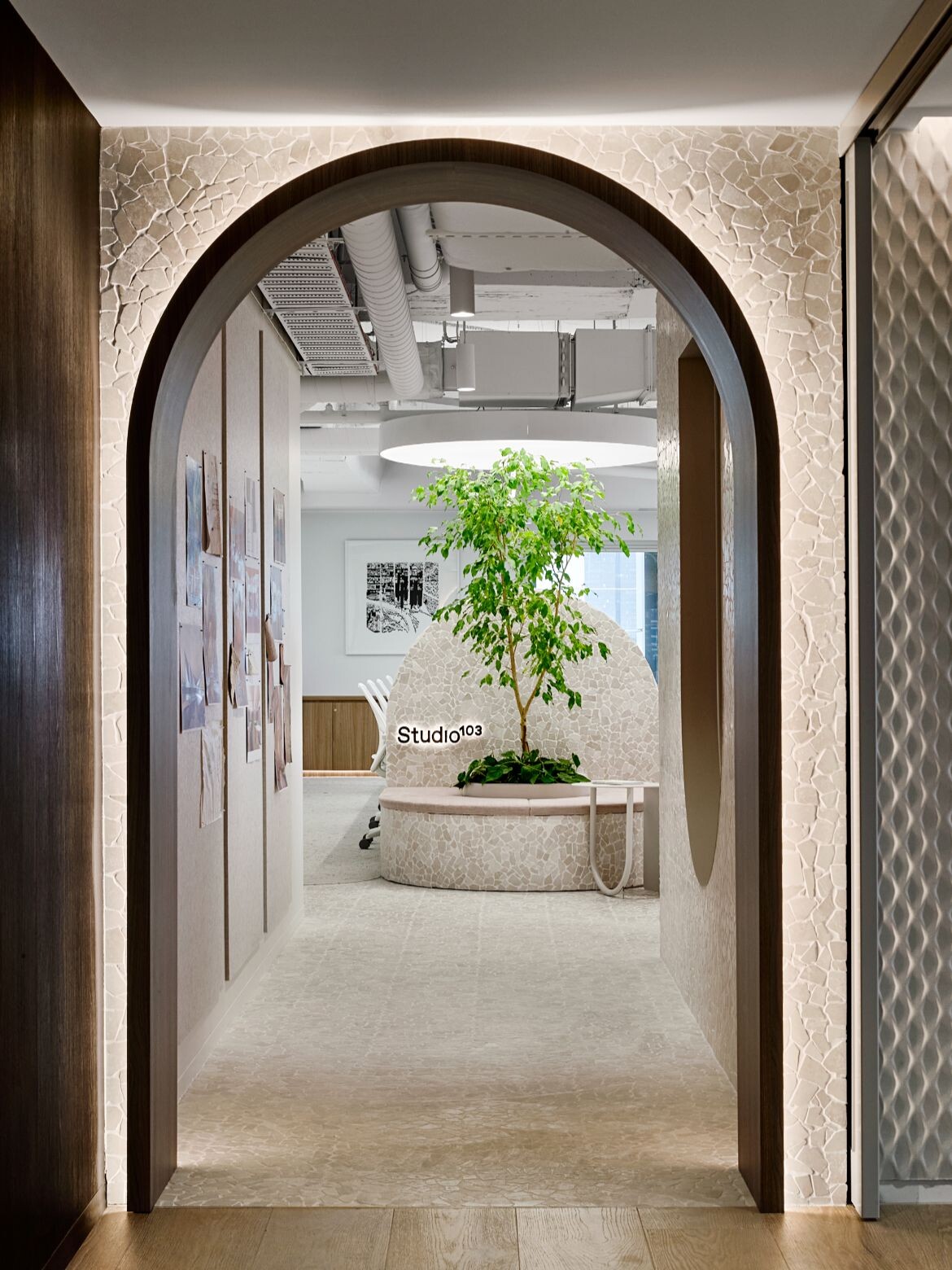 Taking this feedback into account, Serruto and her team developed a design that divided the space in such a way that McCormack and Studio 103 “could sit by side-by-side but still retain their own distinct identities.”