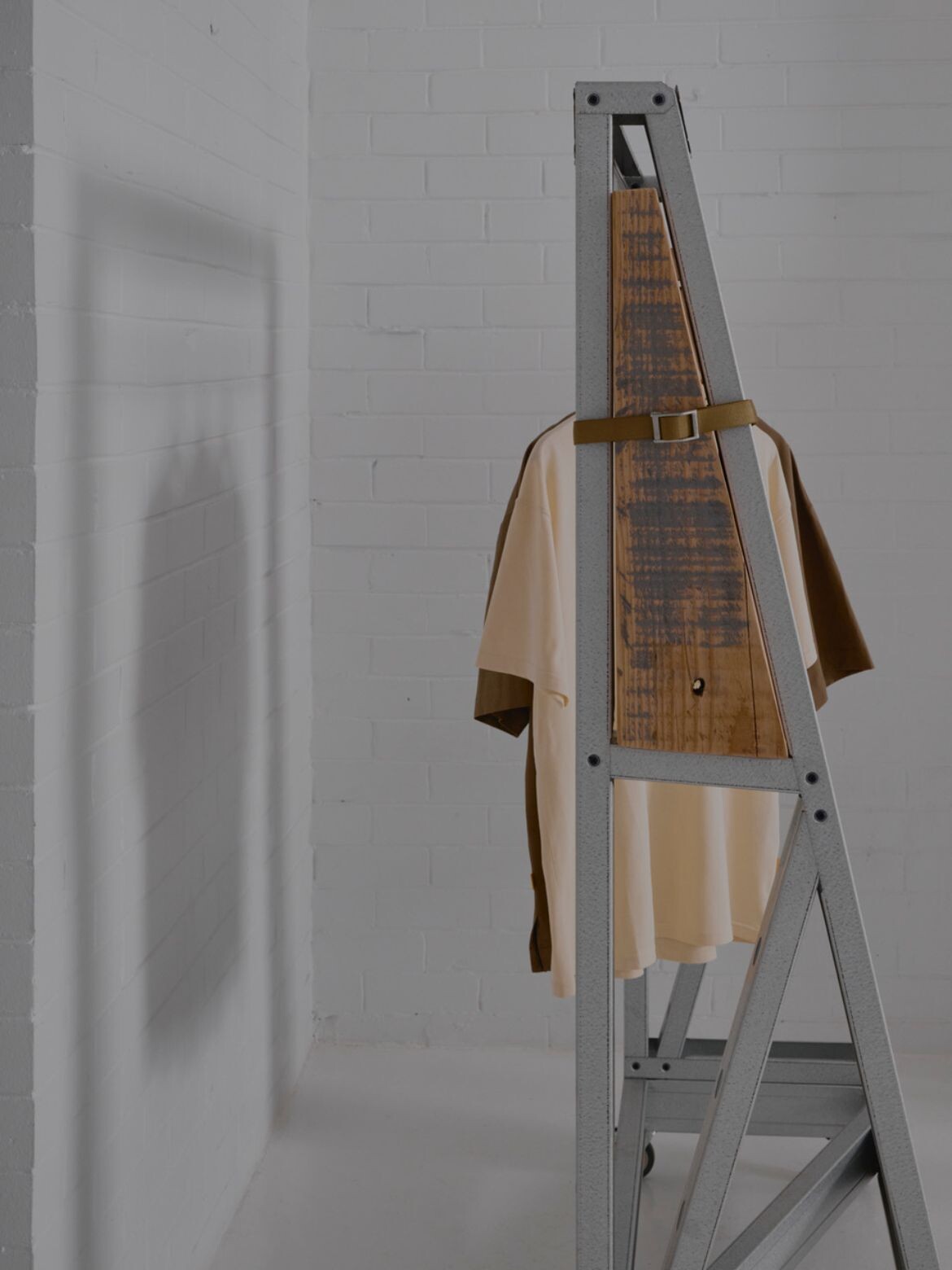 Through discipline. Each material performs structurally, visually and sensorially. The system is robust but not heavy, engineered but approachable. The human touch comes from the method of assembly – the tension straps, the hand-cut timber, the layered felt wrapping the rails. The process is made visible in the result which connects people to the work.