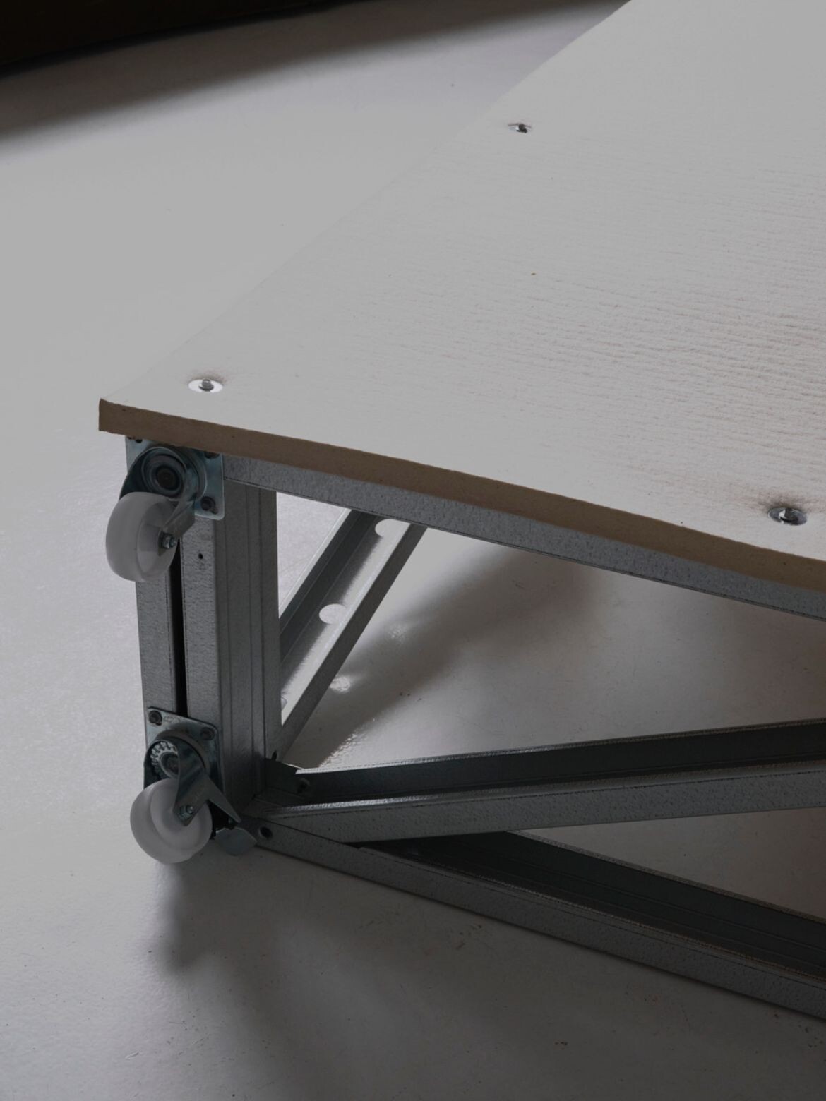 As an architectural system. The components can stand alone or combine to define an entire space. Their adaptability allows each iteration to respond to varying locations whilst maintaining a coherence. It’s a system built for movement, for testing and for continual re-use.