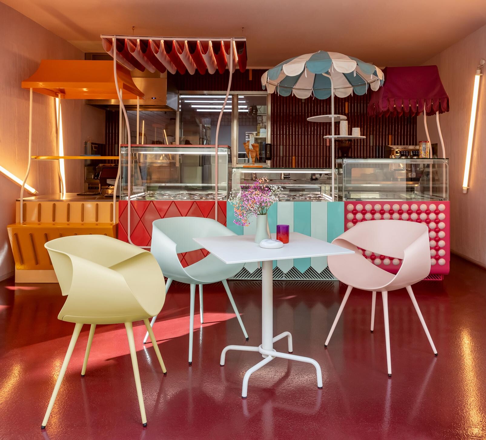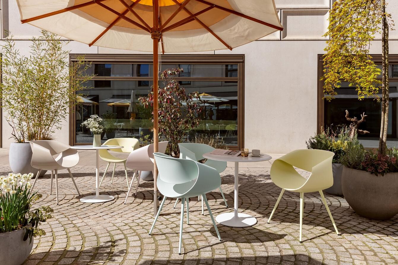 The design of the seat, backrest, armrests and sub-frame combine to produce a sculptural piece that is all smooth lines with curvaceous appeal. The Little Perillo Eco sits perfectly inside or outside and adds a touch of elegance whether situated in a home, a café or other commercial locations.